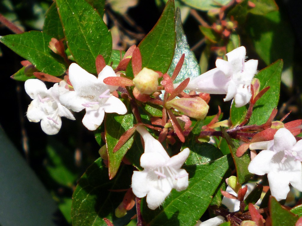 La Abelia (Abelia grandiflora) es muy empleada en jardinería tanto en espacios públicos como privados. Este arbusto semicaducifolio de ramas arqueadas y rojizas, puede llegar a medir hasta 3 metros de altura.