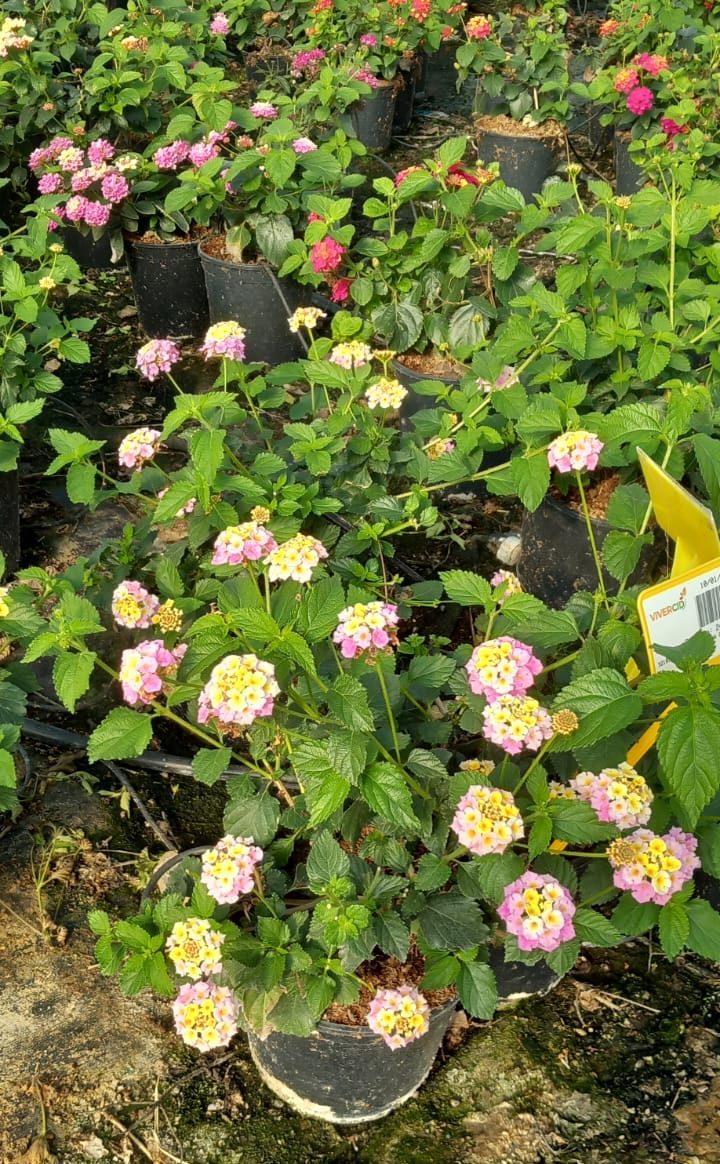 Este arbusto perennifolio, originario de zonas tropicales (Sudamérica), es muy utilizado en jardines mediterráneos, tropicales y de bajo mantenimiento. Puede alcanzar alturas de hasta 1,5 m y su crecimiento es rápido. Las hojas de la lantana son simples, con margen dentado, rugosas, ásperas y de color verde oscuro. Tiene un aroma característico. Las flores se agrupan en cimas y son, en este caso, de distintas tonalidades de rosa y blanco.