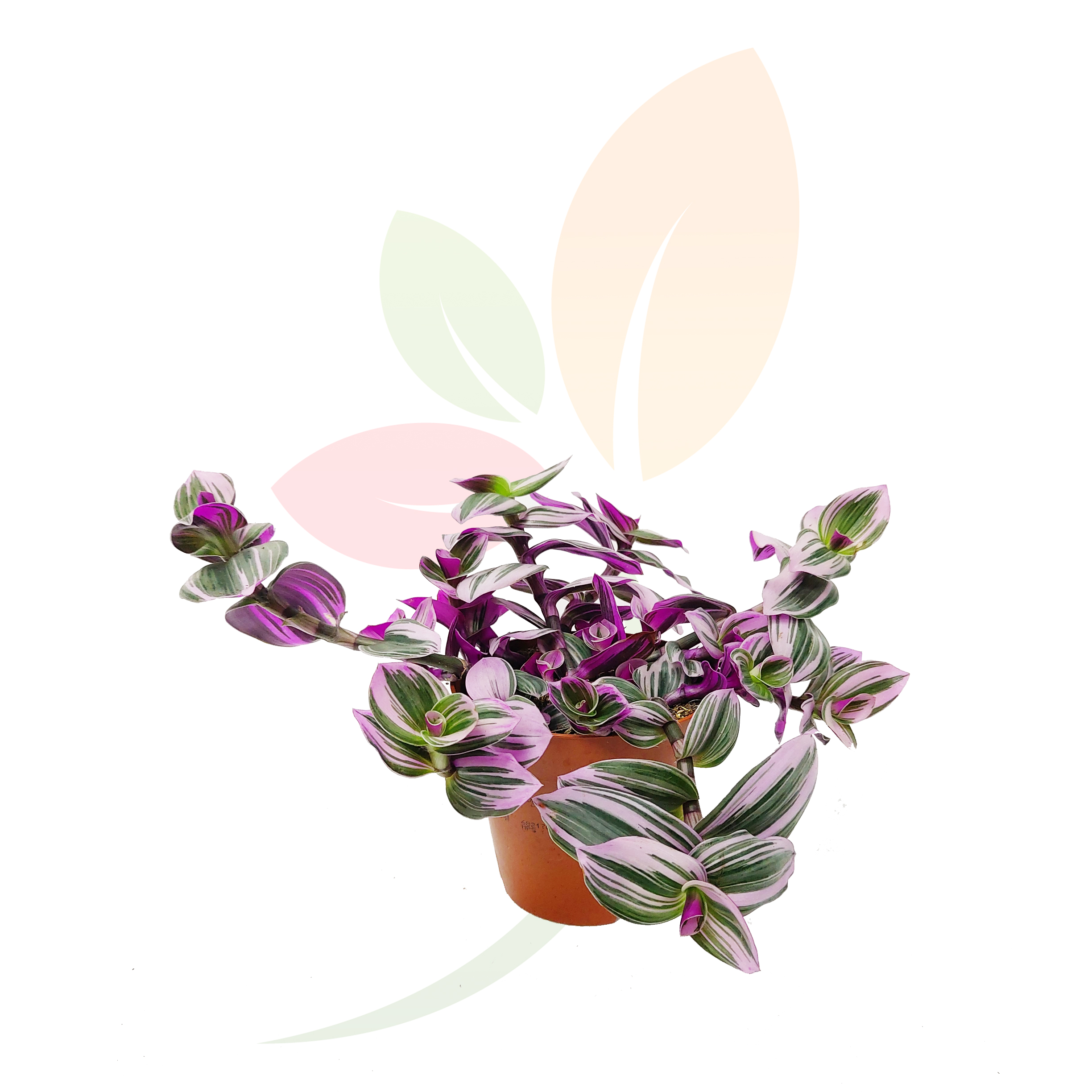 En el interior de casa, un tiesto alto permite sacarle partido a su efecto de caída al igual que las macetas colgantes. Puede cultivarse en solitario o combinada con otras plantas. Su follaje característico son franjas plateadas y verdes y el envés purpura.